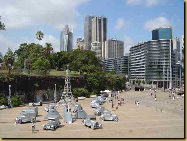 Blick von den Monumental Steps bei der Opera auf ein "Kunstwerk" während des Sydneyfestivals